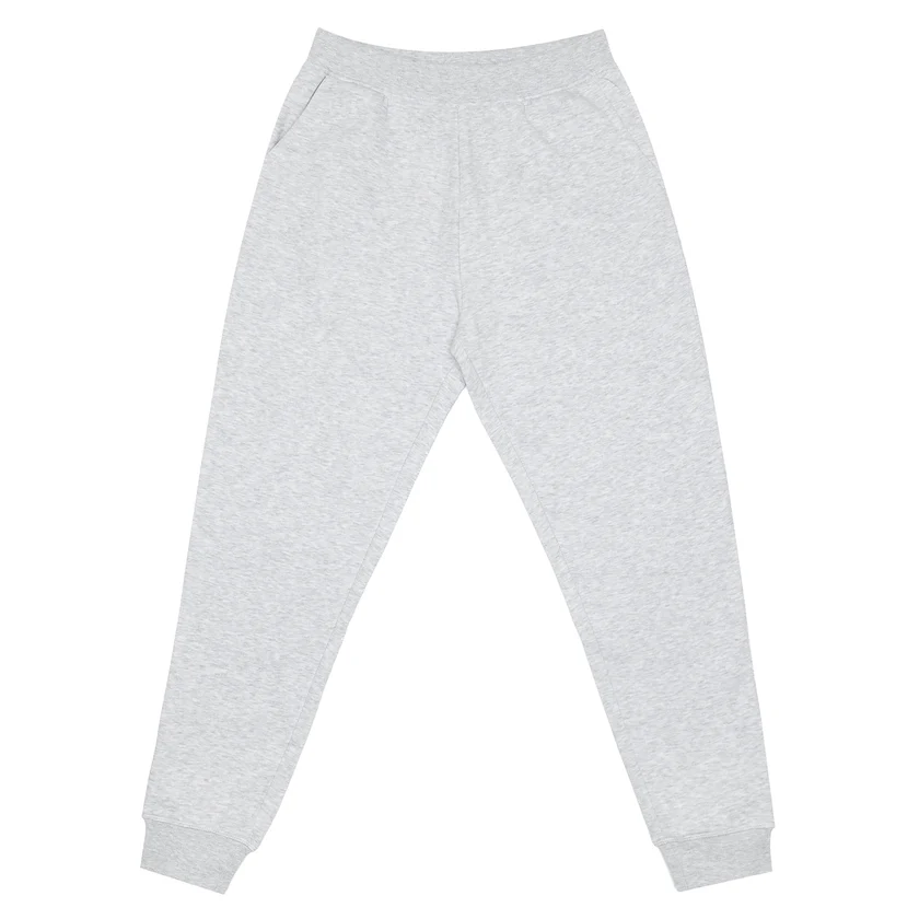 Premium fleece joggers in Ash. 100% combed ringspun cotton with tapered fit, roomy side pockets, and 2×2 ribbing. Perfect for custom printing and personalization.