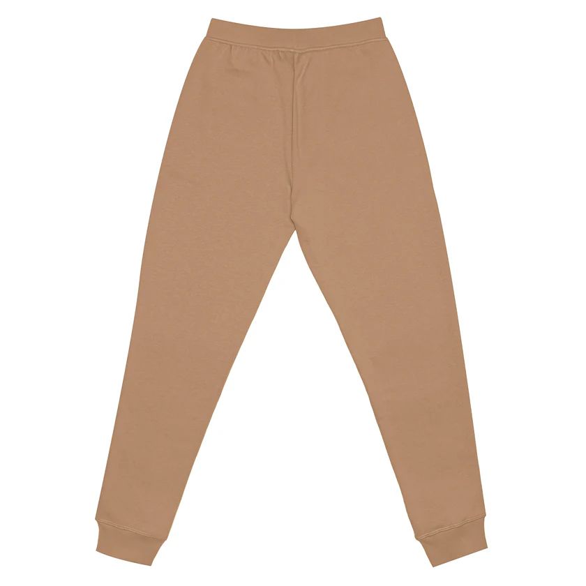 Premium fleece joggers in Clay. 100% combed ringspun cotton with tapered fit, roomy side pockets, and 2×2 ribbing. Perfect for custom printing and personalization.