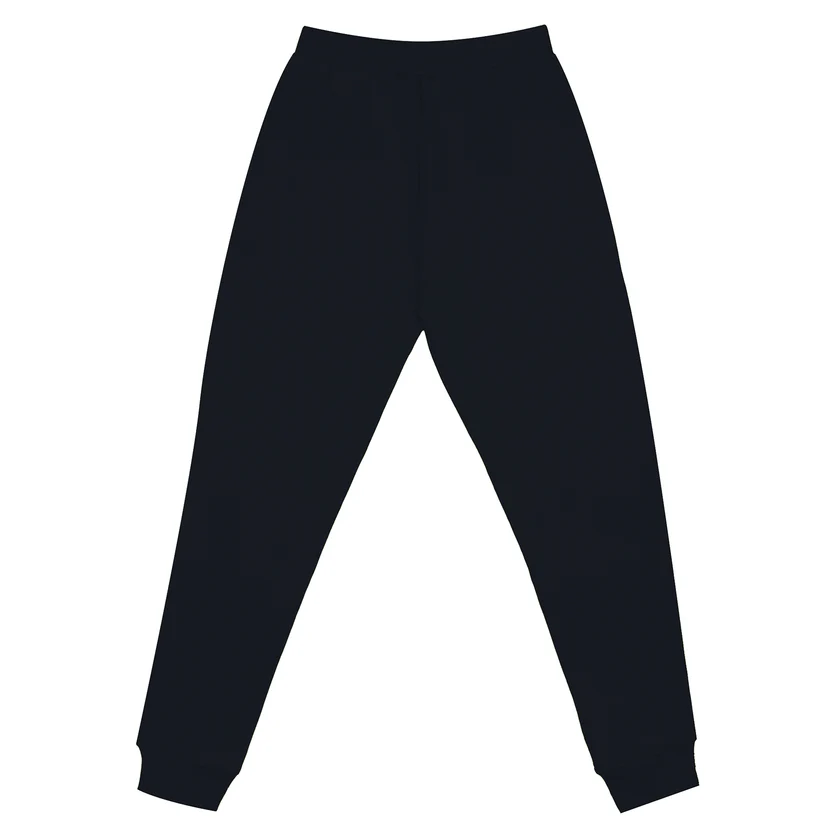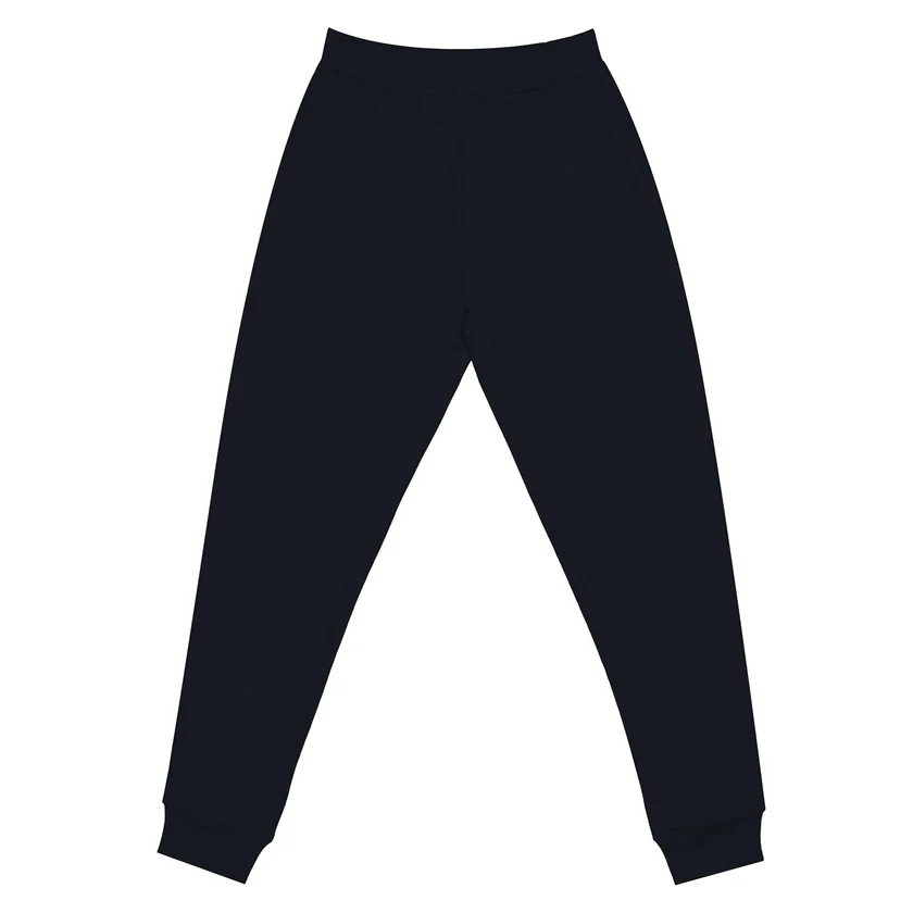 Premium fleece joggers in Navy. 100% combed ringspun cotton with tapered fit, roomy side pockets, and 2×2 ribbing. Perfect for custom printing and personalization.
